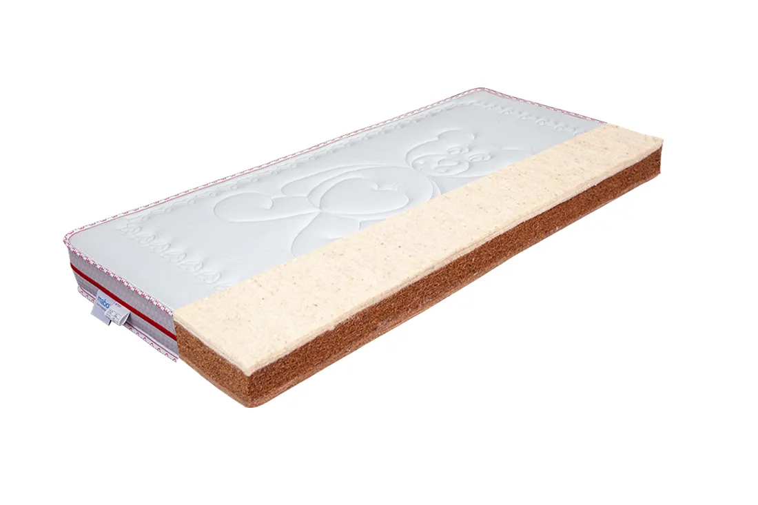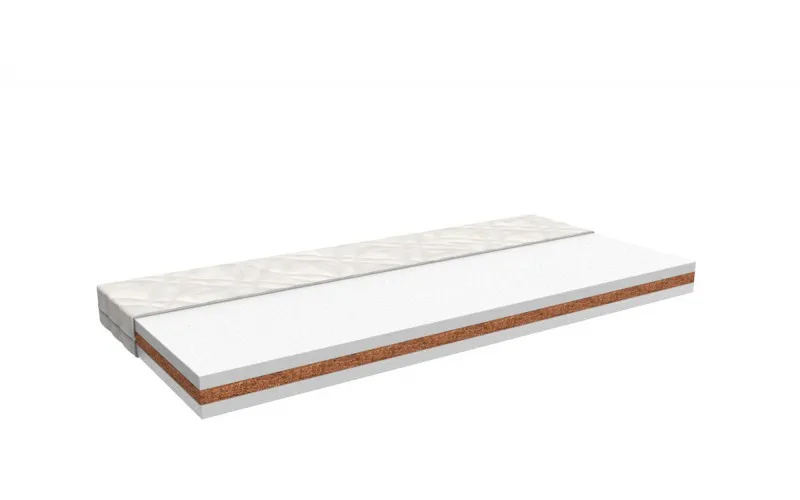 Sendvičová dětská matrace z PUR pěny a kokosových vláken. Nabízí pevnou, ale přitom komfortní oporu páteře, výborně odvádí vlhkost a je ideální pro zdravý a klidný spánek miminek i batolat.
