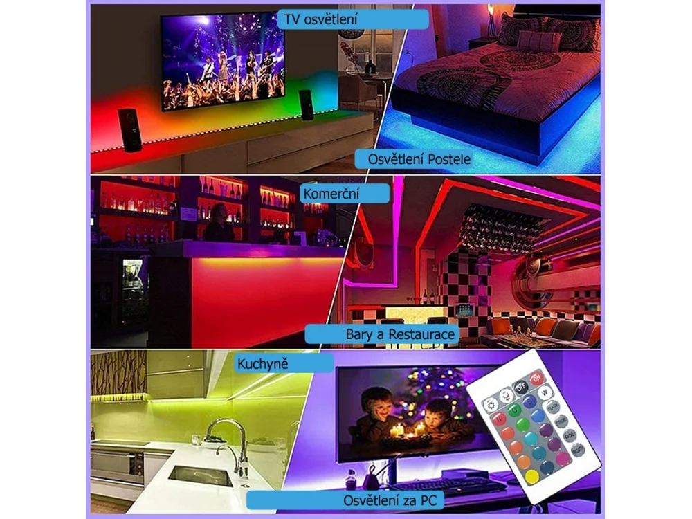Kompletní sestava samolepícího pásku s délkou dle výběru. V sestavě i s ovladačaem a napájením. Vhodná kombinace pro osvětlení interiéru.
