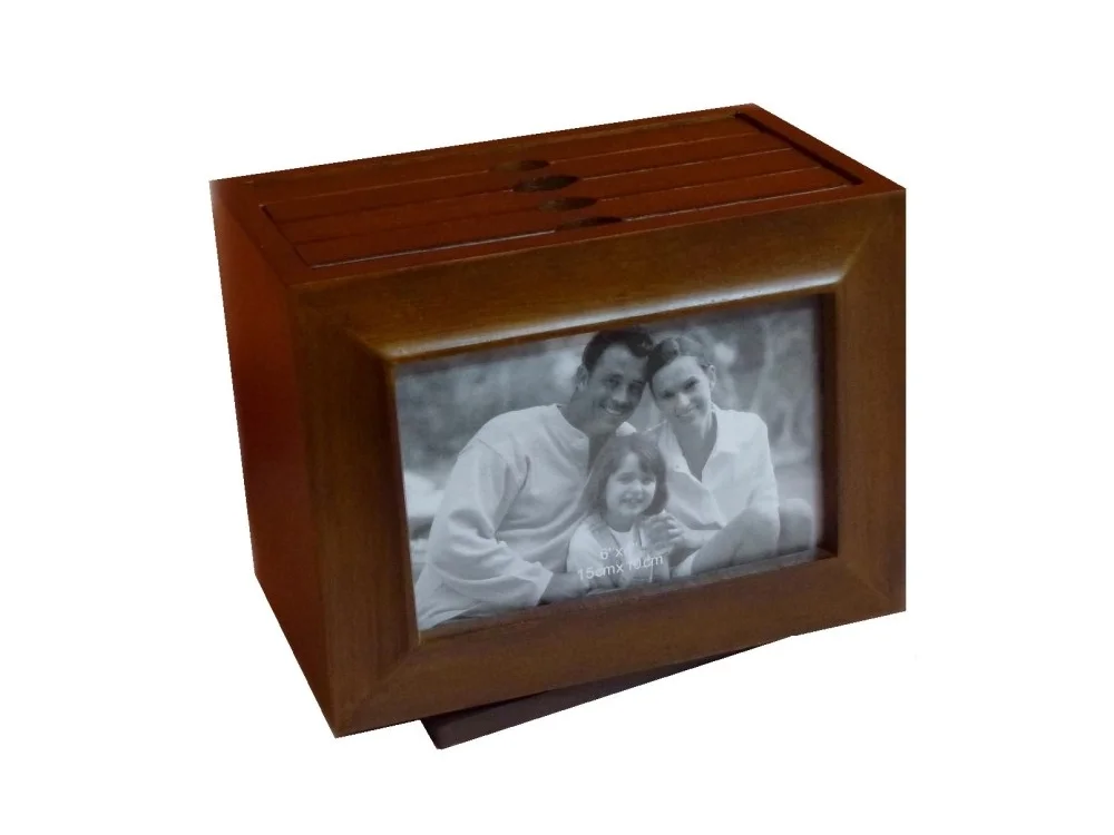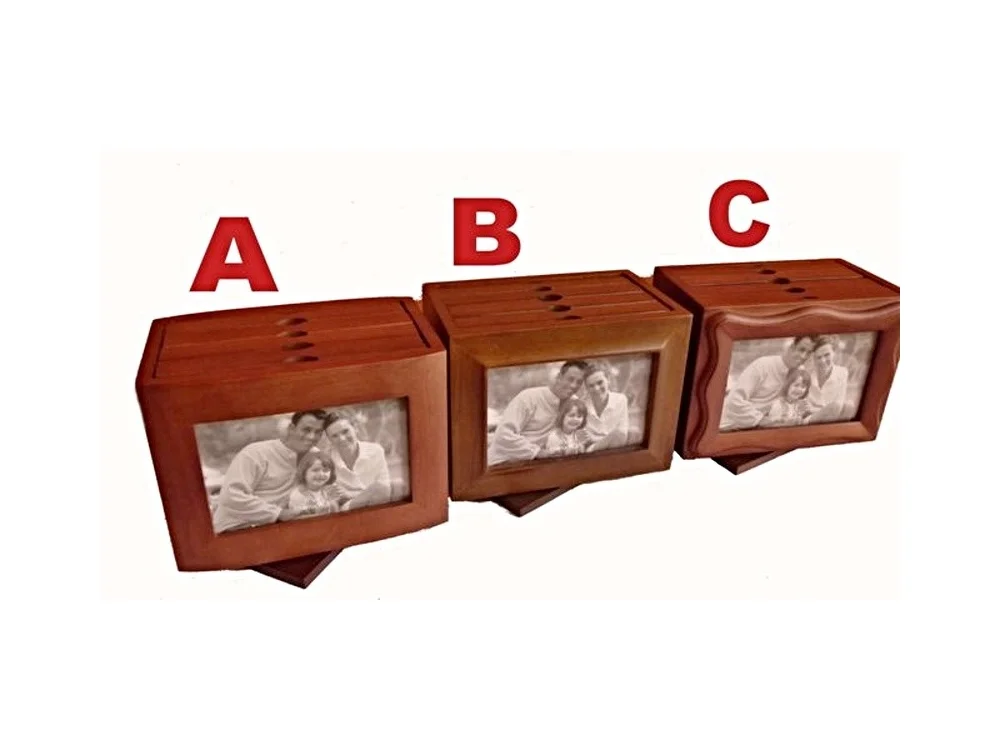 Dřevěný box na otočném podstavci pro uložení 96 fotek + 2 fotky v čele fotoboxu.
