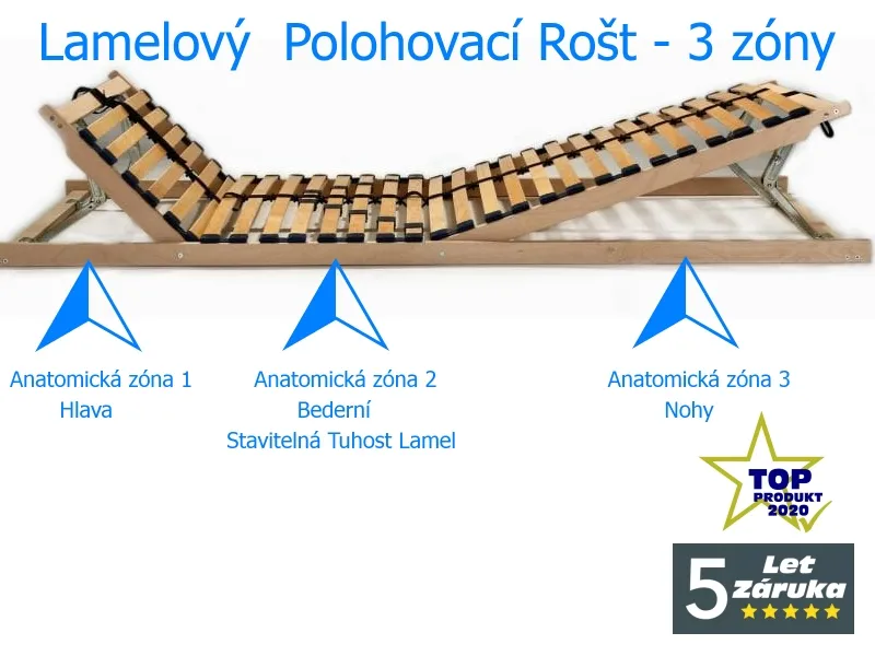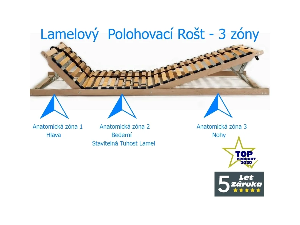 Lamelový rošt 3 zóny polohovací hlava-střed-nohy
