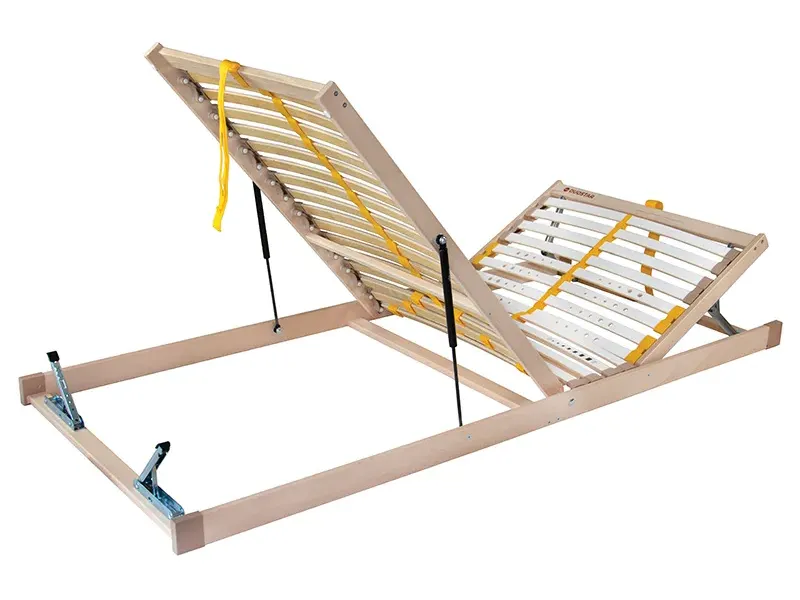 Praktický rošt Duostar je skvělou volbou pro pohodlné a zdravé spaní. Rošt s vyklápěním nožní části pomocí pístu vám zajistí jednoduchý přístup do celého úložného prostoru pod lůžkem. Zároveň lze rošt napolohovat v oblasti hlavy i nohou pro pohodlí a relax na lůžku. Zdvih pomocí textilního úchytu usnadní každodenní manipulaci. Pružné lamely uložené ve dvojicích v kaučukových pouzdrech jsou rozložené do 5 anatomických zón. Vrtané lamely v ramenní oblasti zajišťují nižší tuhost a zmírňují tak tlak na ramena. Středový popruh zlepšuje stabilitu a nosnost roštu. Posuvnými objímkami lze nastavit individuální tuhost v bederní části. Lamely opatřené fólií mají schopnost zachytávat pod matrací méně prachu, zamezují zatrhávání potahu a přenášení vlhkosti z matrace do roštu, což je plus, které ocení především lidé s alergií.