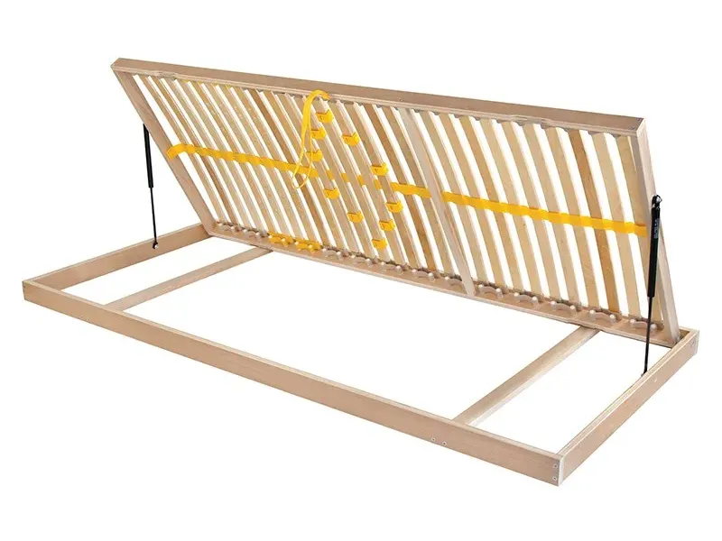 Praktický rošt Duostar je skvělou volbou pro pohodlné a zdravé spaní. Postelový rošt s bočním výklopem pro přístup do úložného prostoru řeší nedostatek místa v ložnici. Zdvih pomocí textilního úchytu usnadní každodenní manipulaci. Pružné lamely uložené ve dvojicích v kaučukových pouzdrech jsou rozložené do 5 anatomických zón. Vrtané lamely v ramenní oblasti zajišťují nižší tuhost a zmírňují tak tlak na ramena. Středový popruh zlepšuje stabilitu a nosnost roštu. Posuvnými objímkami lze nastavit individuální tuhost v bederní části. Lamely opatřené fólií mají schopnost zachytávat pod matrací méně prachu, zamezují zatrhávání potahu a přenášení vlhkosti z matrace do roštu, což je plus, které ocení především lidé s alergií.