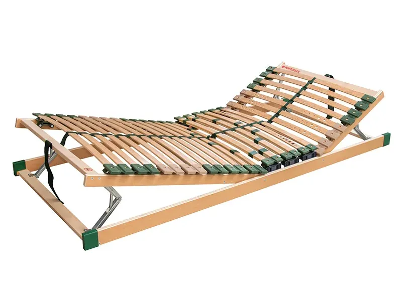 Portoflex EXTRA je inovativní rošt, který napomáhá řešení problémů s bederní lordózou (prohnutí páteře). Výškové nastavovače umožní 5 výškových stupňů podpory v bederní části. Jeho pružné lamely jsou rozděleny do pěti anatomických zón, což poskytuje optimální podporu pro každou část těla. Speciální změkčení lamel v ramenní oblasti pomáhá snižovat tlak na ramena a středový popruh zajišťuje vysokou stabilitu roštu. Navíc, výkyvná pouzdra nad bočnicí zvyšují nosnost a odolnost proti prudkému zatížení. Lamely jsou opatřeny ochrannou folií, což prodlužuje jejich životnost a zajišťuje snadnou údržbu. Polohování hlava-nohy s pevnou středovou částí zajistí pohodlí a dokonalý relax.