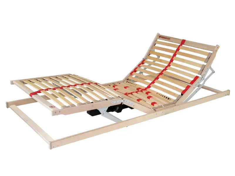 Kvalitní lamelový rošt za dobrou cenu - to je Primaflex. Dopřejte si ve vaší ložnici nejvyšší pohodlí! Postelový rošt s motorovým polohováním je ideální pro pohodlné čtení a odpočinek na lůžku. Pružné lamely uložené ve dvojicích v kaučukových pouzdrech jsou rozložené do 3 anatomických zón. Středový popruh zlepšuje stabilitu a nosnost roštu. Posuvnými objímkami lze nastavit individuální tuhost roštu v bederní části. Tento rošt je dodáván s dálkovým bezšňůrovým ovládáním.