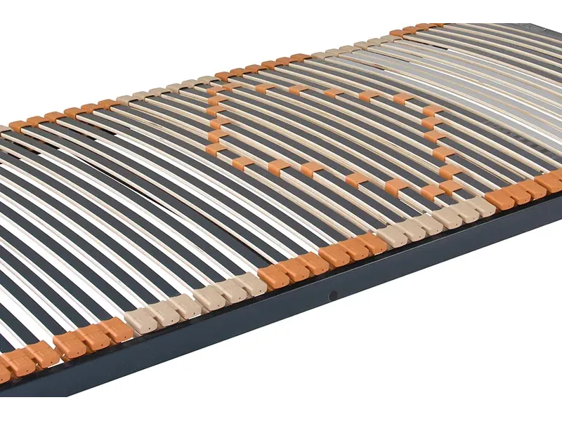 Luxusní rošt Trioflex uspokojí svým provedením i ty nejnáročnější spáče. Dokonale přizpůsobivý rošt s vysokým počtem úzkých lamel zajistí velmi dobré přizpůsobení tlaku těla na ploše lůžka. Rošt disponuje celkem 42 lamelami, dokáže tak velmi dobře spolupracovat s matrací a rovnoměrně roznášet váhu těla. Čím více lamel rošt má, tím je lůžko pružnější a vlastnosti matrace lépe vyniknou. Trio kapsy dvojí tuhosti člení plochu lůžka do 7 anatomických zón – každá část těla je tak individuálně podpořena. Posuvné objímky jsou rozloženy na větší ploše roštu, tím lépe vyhovují individuálním nárokům na zpevnění v bederní oblasti. Ramenní kolébka pomáhá zmírnit otlačení a bolesti ramen při spánku na boku. Celý povrch roštu je opatřen fólií, která zajišťuje snadnou údržbu, snižuje riziko vzniku bakterií a plísní a chrání matraci před zatrháváním potahu. Přídavná lišta zamezí deformaci okrajů matrace.