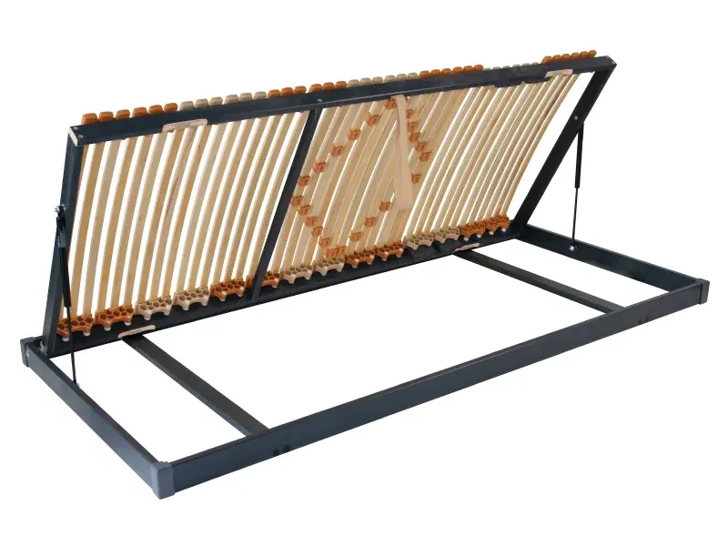 Luxusní rošt Trioflex uspokojí svým provedením i ty nejnáročnější spáče. Postelový rošt s bočním výklopem pro přístup do úložného prostoru řeší nedostatek místa v ložnici. Zdvih pomocí textilního úchytu usnadní každodenní manipulaci. Dokonale přizpůsobivý rošt s vysokým počtem úzkých lamel zajistí velmi dobré přizpůsobení tlaku těla na ploše lůžka. Rošt disponuje celkem 42 lamelami, dokáže tak velmi dobře spolupracovat s matrací a rovnoměrně roznášet váhu těla. Čím více lamel rošt má, tím je lůžko pružnější a vlastnosti matrace lépe vyniknou. Trio kapsy dvojí tuhosti člení plochu lůžka do 7 anatomických zón – každá část těla je tak individuálně podpořena. Posuvné objímky jsou rozloženy na větší ploše roštu, tím lépe vyhovují individuálním nárokům na zpevnění v bederní oblasti. Ramenní kolébka pomáhá zmírnit otlačení a bolesti ramen při spánku na boku. Celý povrch roštu je opatřen fólií, která zajišťuje snadnou údržbu, snižuje riziko vzniku bakterií a plísní a chrání matraci před zatrháváním potahu.