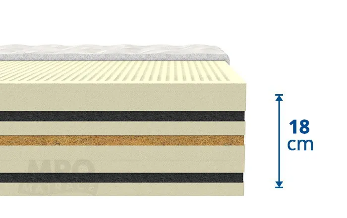 Orientační výška matrace: 18 cm (může se lišit podle typu potahové látky)