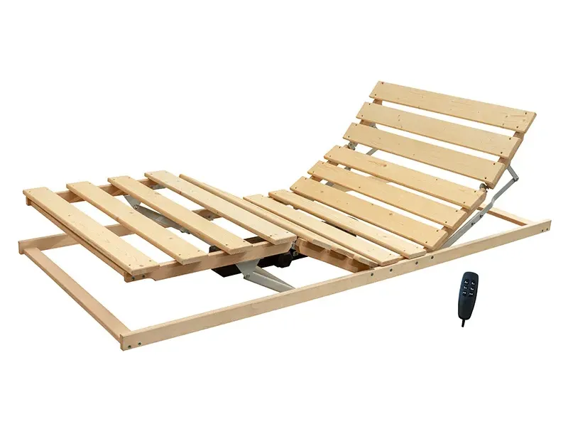 Laťový rošt Latt Lux 14 Motor má polohování pomocí motoru. Laťový rošt s vyšší nosností 130 kg. Rošt se skládá ze 15 latí ze smrkového dřeva uchycených pomocí vrutů ke konstrukci rámu. Nadstandardní výdrž a odolnost díky přídavným zpevňujícím hranolkům. Zaoblené hrany zvyšují pohodlí nejen při manipulaci s roštem, ale také přispívají ke snadné údržbě matrace.