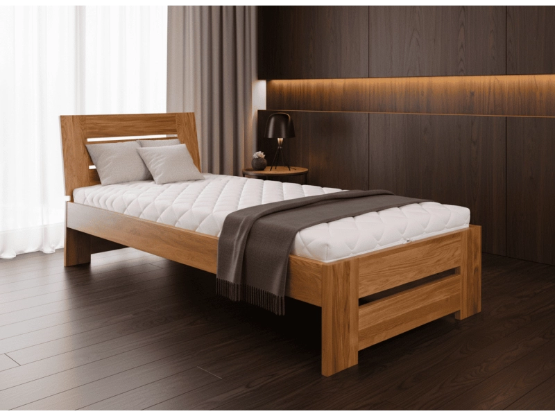 Kvalitní masivní dubová postel LEO je vyrobena z prvotřídního dubového dřeva bez vad, díky kterému vyniká velmi vysokou stabilitou, odolností a životností. Postel je lakovaná dvakrát bezbarvým ekologickým lakem.