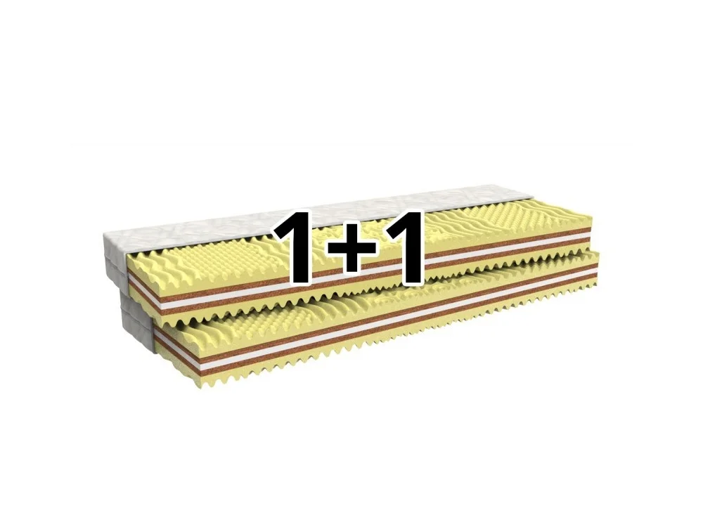 Matrace Hortenzie 1+1 NAVÍC je díky dvěma vrstvám přírodních kokosových vláken velmi vzdušná a vhodná pro všechny druhy podložek a lamelových roštů. Má 7 anatomických zón, nosnost 120 kg a výšku 15 cm. Výbornou vlastností kokosového vlákna je odolnost proti bakteriím, vlhkosti a hnilobě. Speciální nopky na lehacích plochách matrace mají masážní efekt a usnadňují proudění vzduchu mezi potahem a matracovým jádrem. Matrace Hortenzie je díky tepelně modifikované PUR pěně vysoce komfortní a vyznačuje se dlouhou životností. V každém věku a situaci vám zajistí zdravý spánek po celou noc. Všechny typy nabízených potahů jsou alergicky neutrální a pratelné. Stačí si vybrat ten nejlepší pro vás.