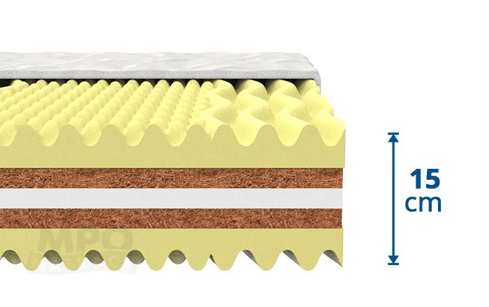 Orientační výška matrace: 15 cm (může se lišit podle typu potahové látky)