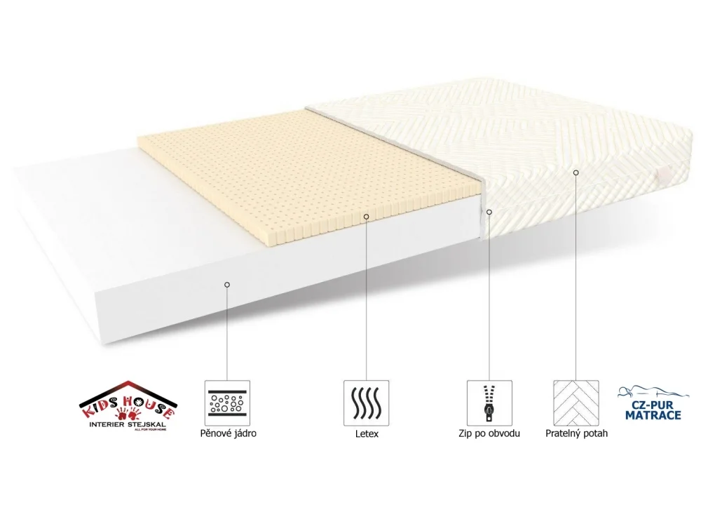 Složení Matrace: - Polyuretanová pěna -Latex -Potah na ZIP -Prošívaný potah