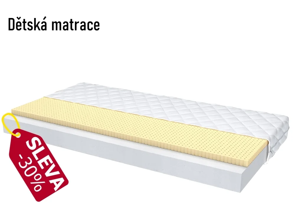 Matrace byla specielně navrhnuta pro děti do věku 15let. Poskytuje skvělou tepelnou izolaci a antibakteriálnost. Použitý Latex je vysoce antiseptický a neutrální k pokožce. Matrace je oboustranná a vyznačuje se vhodnou tuhostí pro děti. Výška matrace je 8cm Potah je pratelný Materiál 100%PES Tuhost matrace 3-4