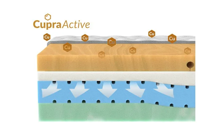 Matrace s pamětovou pěnou s obsahem molekul mědi pro Váš spánek a odpočinek. Matrace Cupra Biogreen je vhodná pro aktivní lidi, sportovce a pro všechny věkové kategorie včetně dětí.