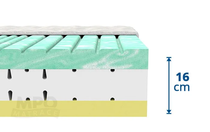 Orientační výška matrace: 16 cm (může se lišit podle typu potahové látky)