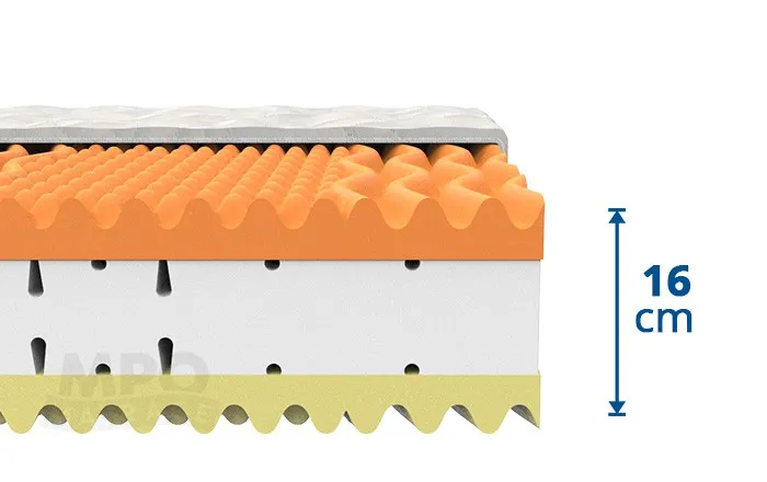 Orientační výška matrace: 16 cm (může se lišit podle typu potahové látky)