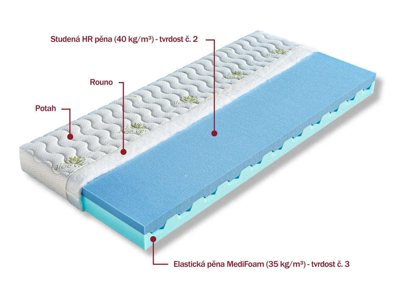 Tato matrace je ideální pro děti a mládež. Je složená ze dvou elastických pěn odlišných objemových hmotností a nabízí volbu dvojí tvrdosti. Měkčí stranu tvoří studená HR pěna, která je poddajná a velmi elastická. Naproti tomu světle modrá polyuretanová pěna je pevnější, s tvrdostí č. 3. Střed jádra matrace je provzdušněn příčnými průduchy, které zaručují změkčení matrace v exponovaných místech. Samotný průřez matrace umožňuje spojení materiálů bez použití lepidla. Matraci lze uložit jak na pevný, tak i polohovací lamelový rošt.