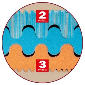 Partnerská matrace dvojí tvrdosti z velmi kvalitních studených pěn, které se vyznačují dlouhou životností.