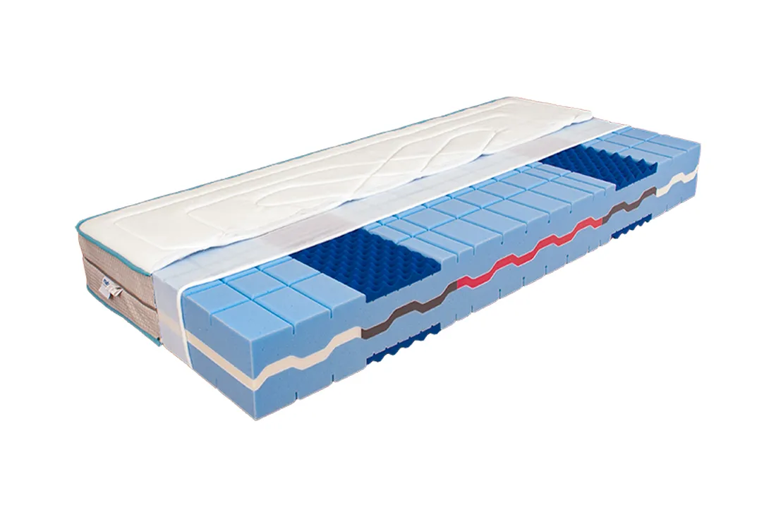 Sedmi-zónová matrace z velmi prodyšné HR studené pěny s obsahem rostlinného oleje ze sóji. Můžete vybírat ze tří tuhostí HR pěny vysoké gramáže.