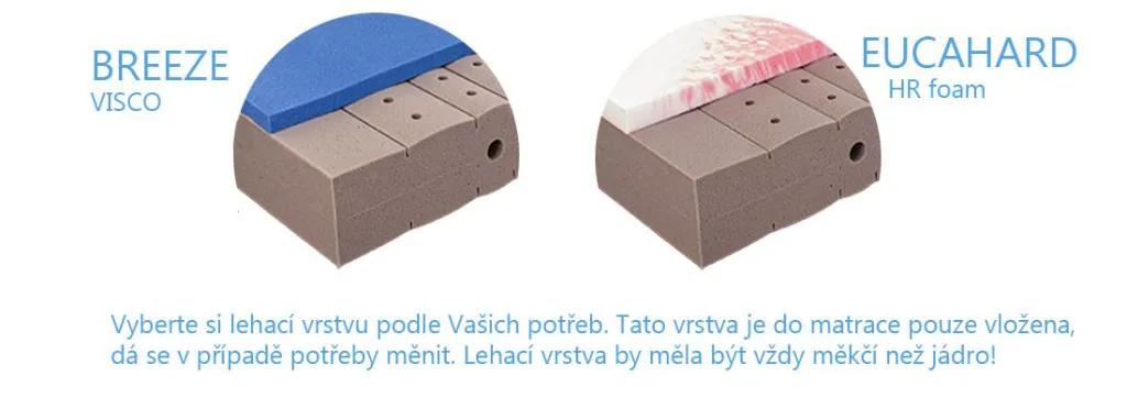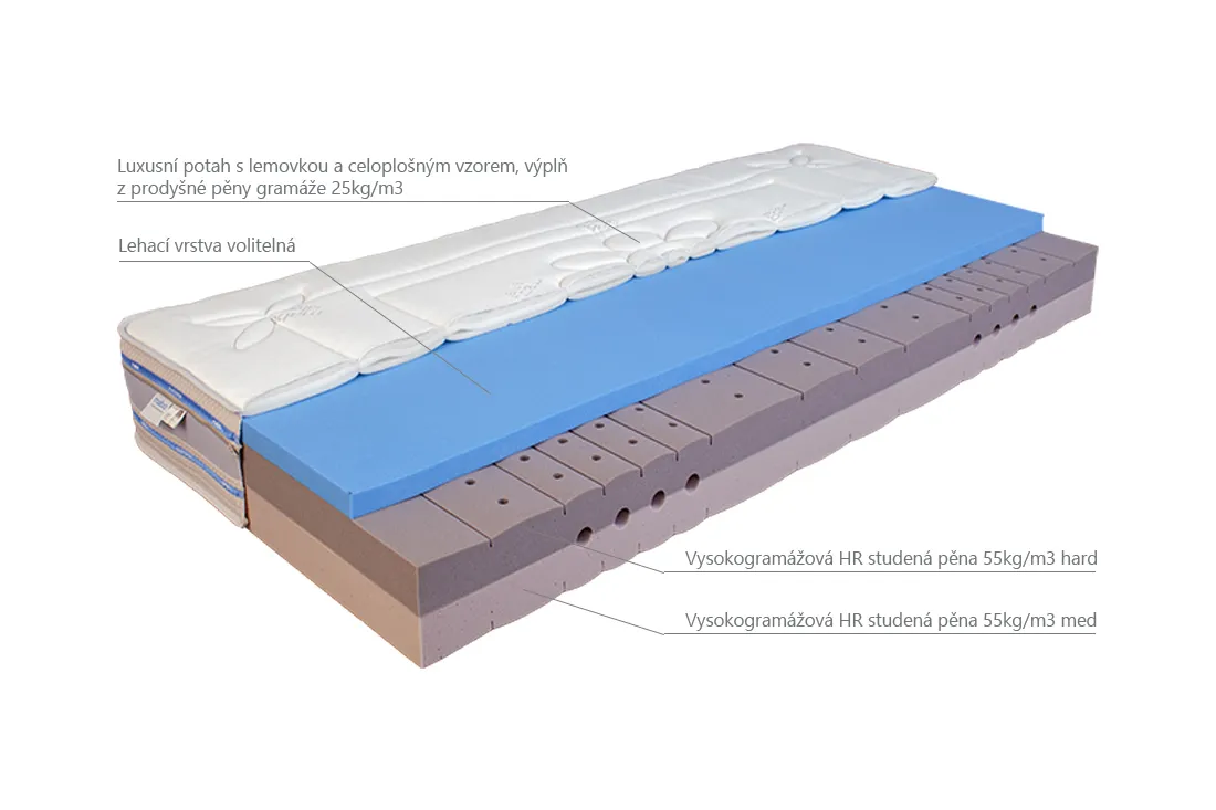 HR - studená pěna, prodyšná a komfortní pěna, odvádí vlhkost z lůžka