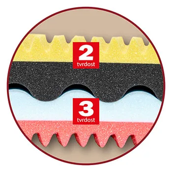Kvalitní pěnová matrace s vlnovým jádrem a oboustrannou rozdílnou tuhostí.
