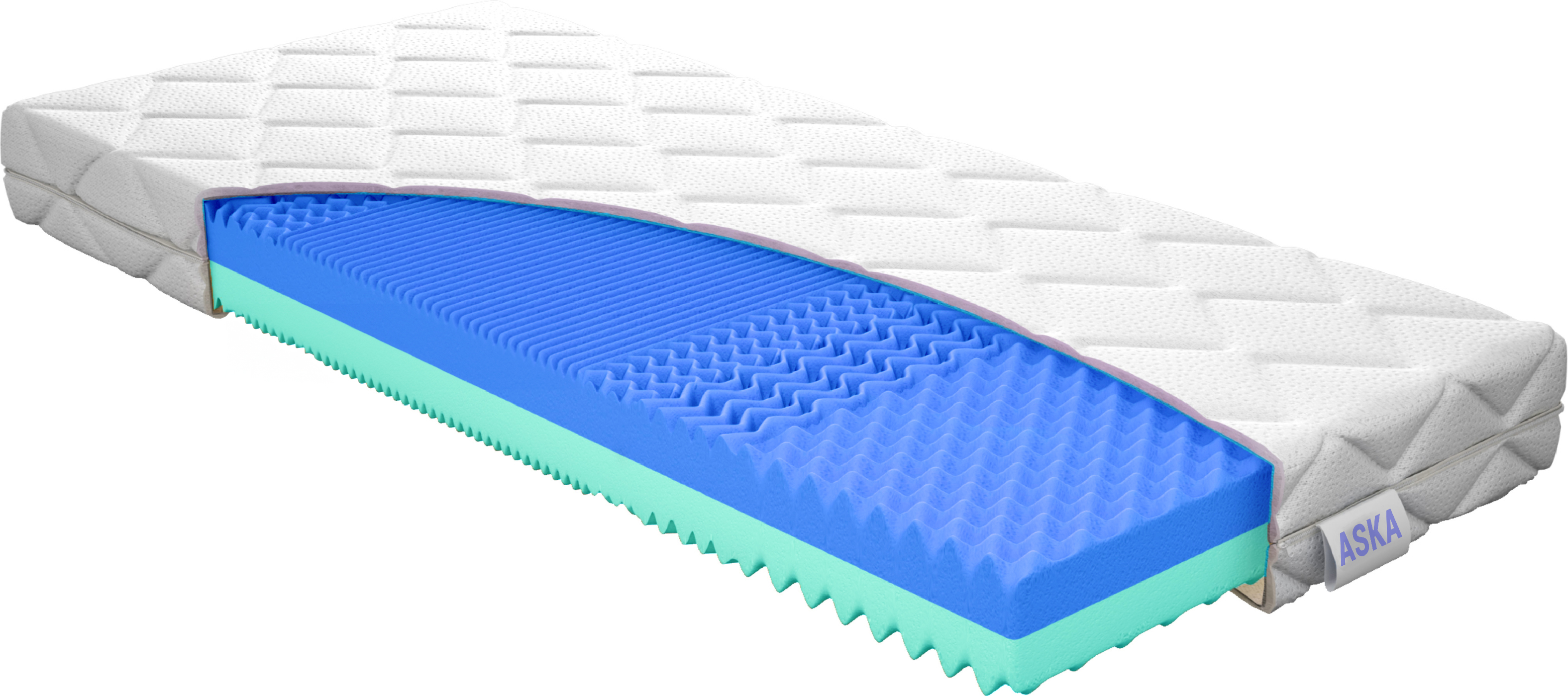 Oboustranná matrace s jádrem ze dvou typů kvalitních polyuretanových pěn nabízí 7-zónovou anatomickou profilaci pro lepší provzdušnění a uvolnění svalstva. Díky anatomickým zónám se přizpůsobí tělu a poskytuje správnou oporu, přičemž je vyrobena z certifikovaných materiálů CARPENTER zaručujících kvalitu a zdravotní nezávadnost.