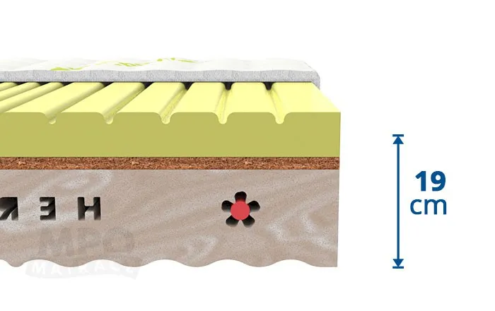 Potah je hypoalergenní, bez chemických přísad a zamezuje množení roztočů, bakterií, hub a dalších mikroorganismů. Tento potah současně umožňuje odvádět vlhkost vylučovanou během spánku. Výhodou materiálu je jeho rychlá vysychavost a příjemný povrch na dotek. Matracový potah je opatřen děleným zipem pro snadnou údržbu, lze jej tedy rozpůlit na dvě samostatné části a prát i v menší pračce na 60°C, přičemž se zachovají veškeré hygienické podmínky. |