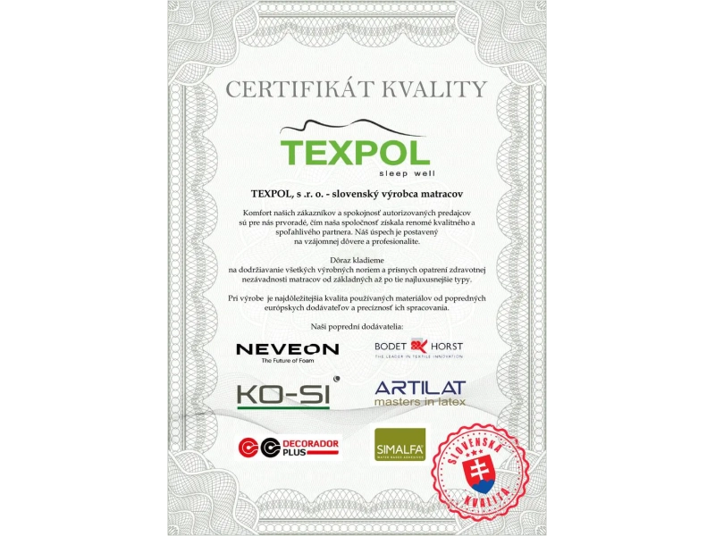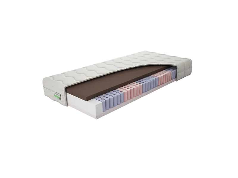 Větší počet pružin rozdělených do 7 zón tuhosti zajišťuje, že taštičkové jádro matrace dokonale kopíruje tvar lidského těla, což napomáhá správné ortopedické podpoře páteře a perfektnímu uvolnění svalstva během spánku. Matrace je oboustranně použitelná – je jen na vás, zda preferujete tvrdší, nebo měkčí stranu.
