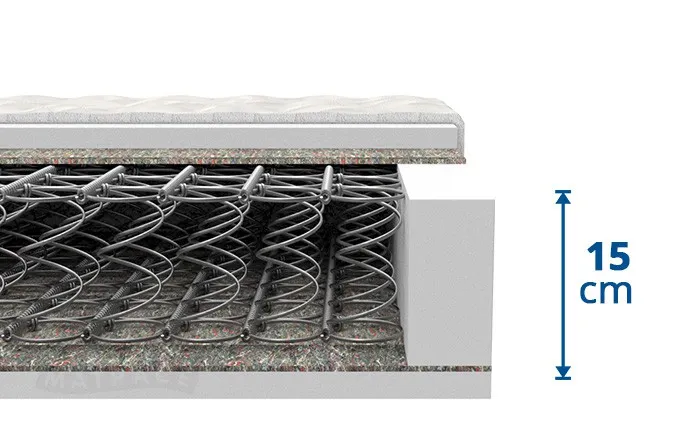 Orientační výška matrace: 15 cm (může se lišit podle typu potahové látky)