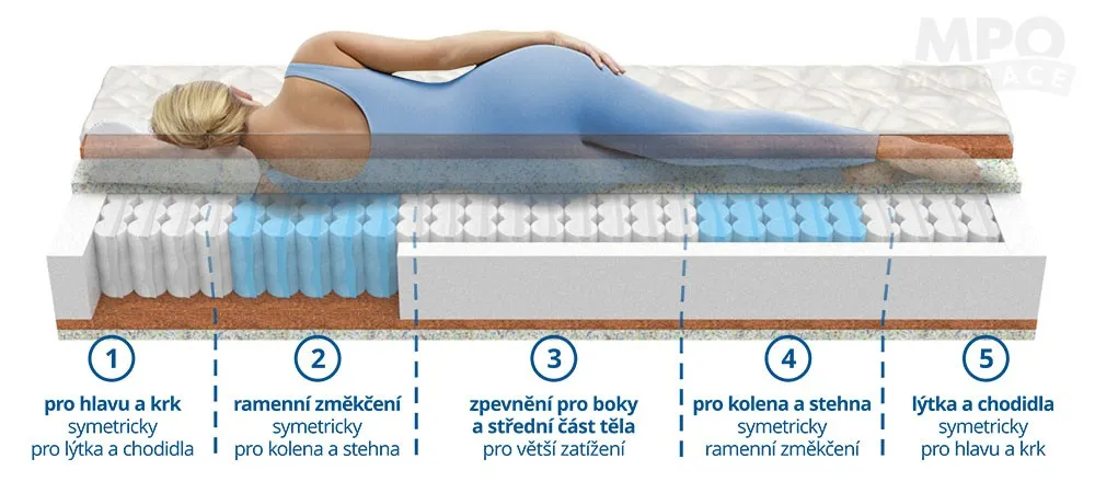 5 zónový systém Taštičková matrace ERGONOMY PLUS