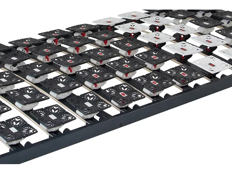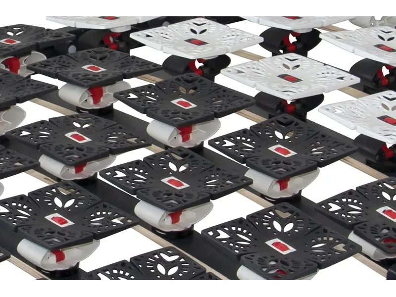 Zcela unikátní rošt netradičního vzhledu Varion, který vyniká především díky speciální konstrukci lehací plochy. Motorový rošt umožňuje nezávislé polohování hlavy a nohou. Lehací plochu tvoří výkyvné talíře, které podpírají tělo v každém bodu a individuálně reagují na danou zátěž. Talíře se pohybují ve všech směrech, čímž dokonale kopírují zátěž těla. Tuhost talířů lze individuálně regulovat jak v ramenní, tak i bederní oblasti. Bodové nastavení pružnosti talířů je značnou výhodou při výrazných rozdílech v proporcích těla (zdravotní handicapy, úzká ramena a široké boky apod.). Profilované talíře umožňují velmi dobré provzdušnění matrace a zvyšují tak hygienu lůžka. Dřevěný rám roštu je opatřen fólií, která zabraňuje pronikání vlhkosti do roštu a vytváření prostředí pro výskyt bakterií a plísní. Delší životnost matrace zajistí přídavná lišta, která matraci rovnoměrně podepře po celé její ploše a zamezí tak deformaci jejich okrajů. Madlo zajistí, že matrace při polohování zůstane na svém místě. Tento rošt je dodáván pouze s dálkovým bezšňůrovým ovládáním.
